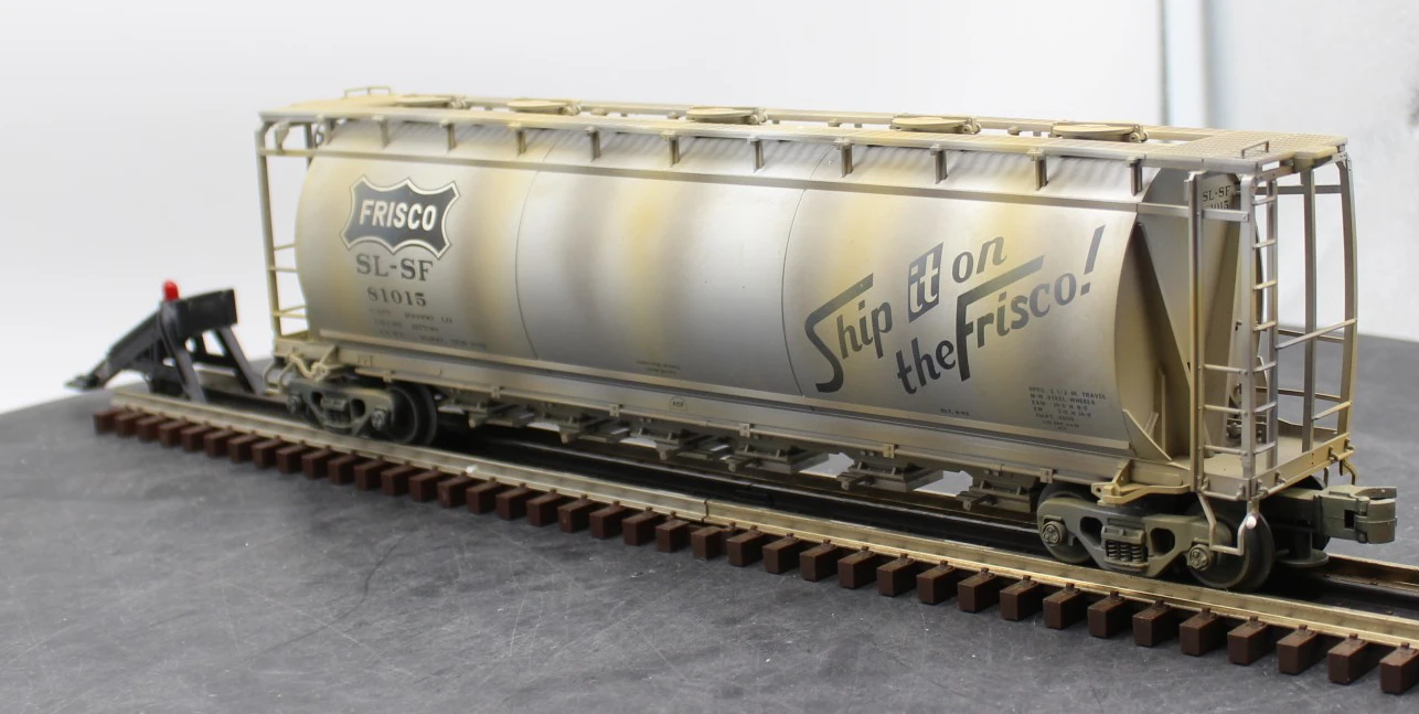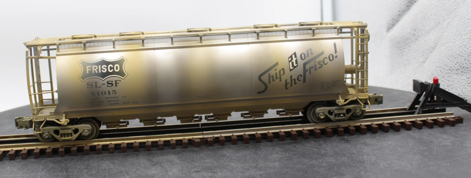 Product Title: Atlas 6333-1 FRISCO ACF 6 Bay Cylindrical Hopper BIG O Rolling Stock 81015 WEATHERED AS IS