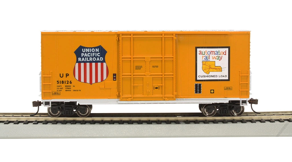 High-Cube Box Car with Sliding Door — HO Scale. Used to economically move merchandise across the US, Box Cars are the workhorse on all Railroads. Large capacity “high cube” cars evolved in the 1960s to meet the needs of the auto parts industry, and are now used by companies looking to maximize their payload on a single train car. The New Bachmann High Cube Box Cars feature updated tooling, prototypical sliding doors (door type varies by prototype), and come in a variety of road names, with prototypical paint schemes. Bachmann Silver Series® rolling stock features: Highly Detailed Painted Body with Precision Graphics, Blackened machined-metal wheels with RP25 contours, Magnetically operated body mounted E-Mate® couplers, Blackened-brass axles with needlepoint bearings, Celcon trucks, and has added weight for optimum tracking.