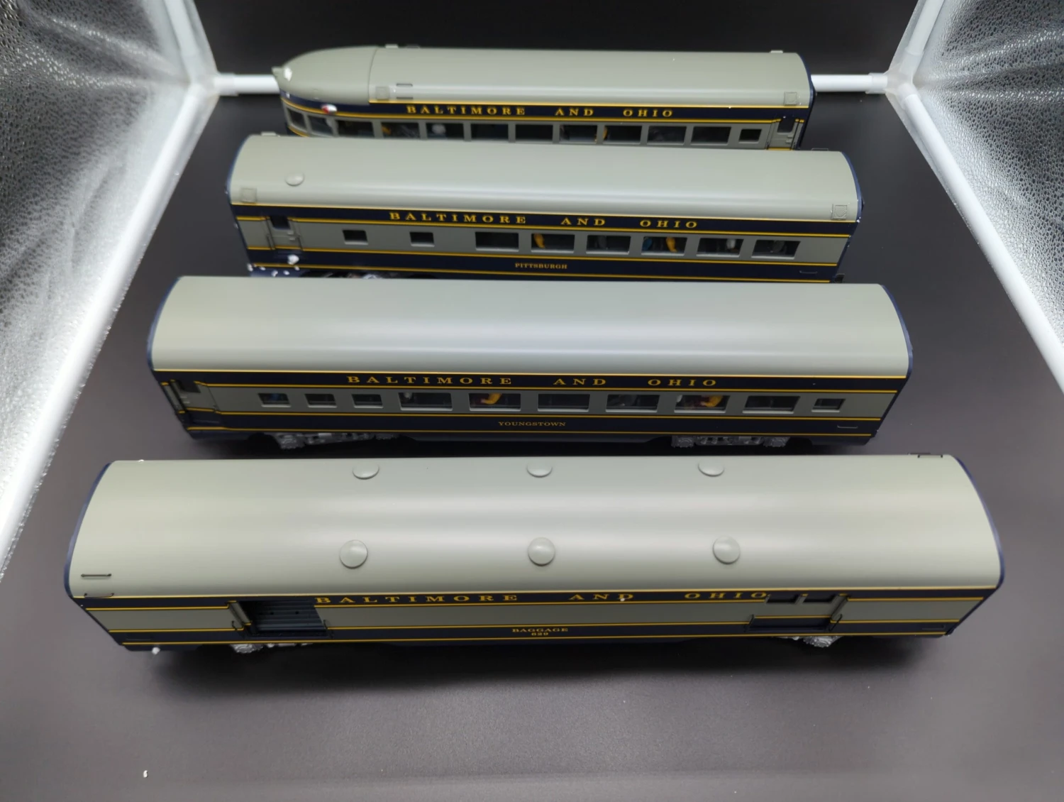 Product Title: K-Line K4610 B&O Baggage Cars 4 Car Set Baggage # 629, Youngstown #5507, Pittsburgh Diner #1091, Washington Observation #3316 # 1091O SCALE