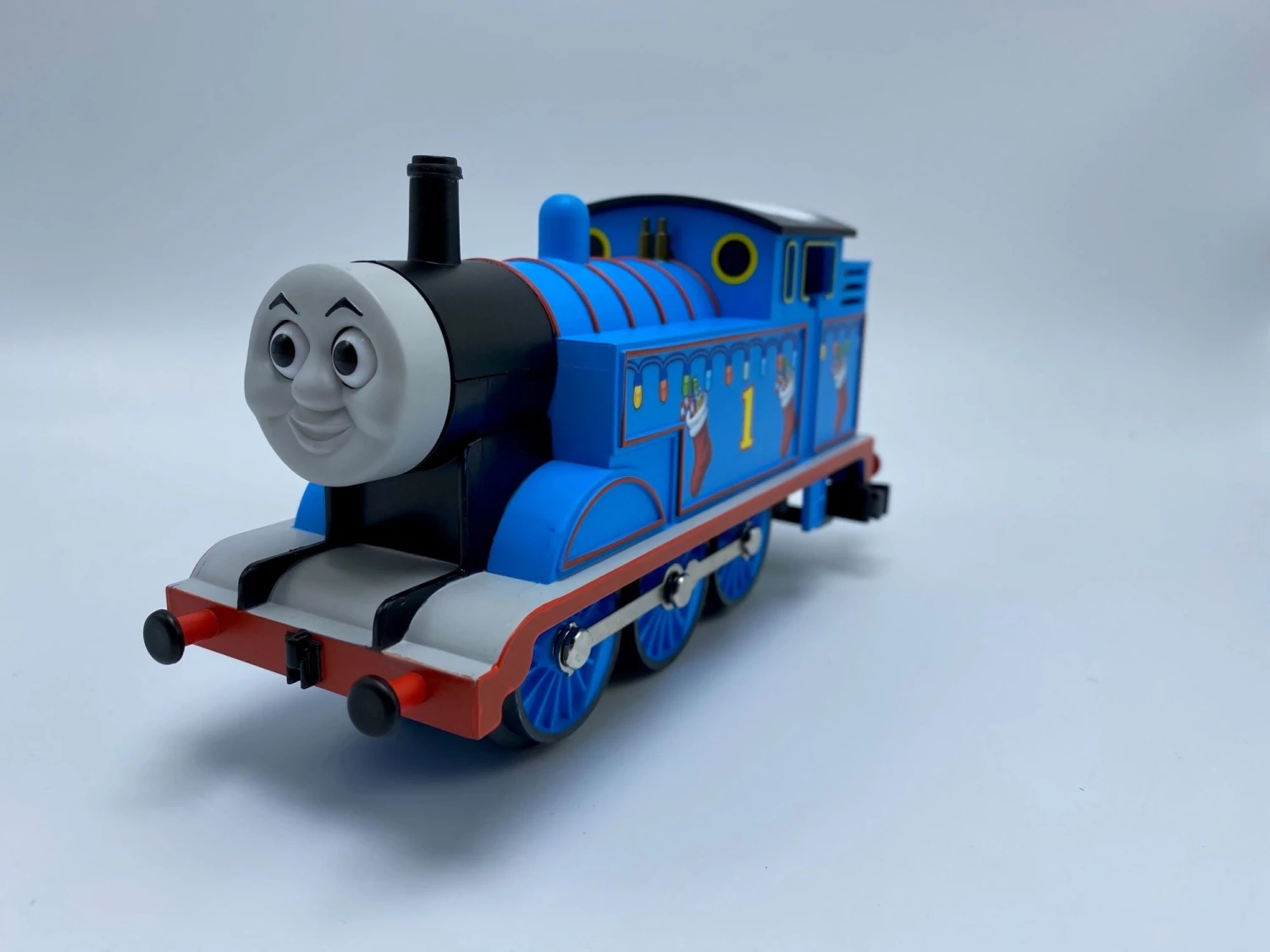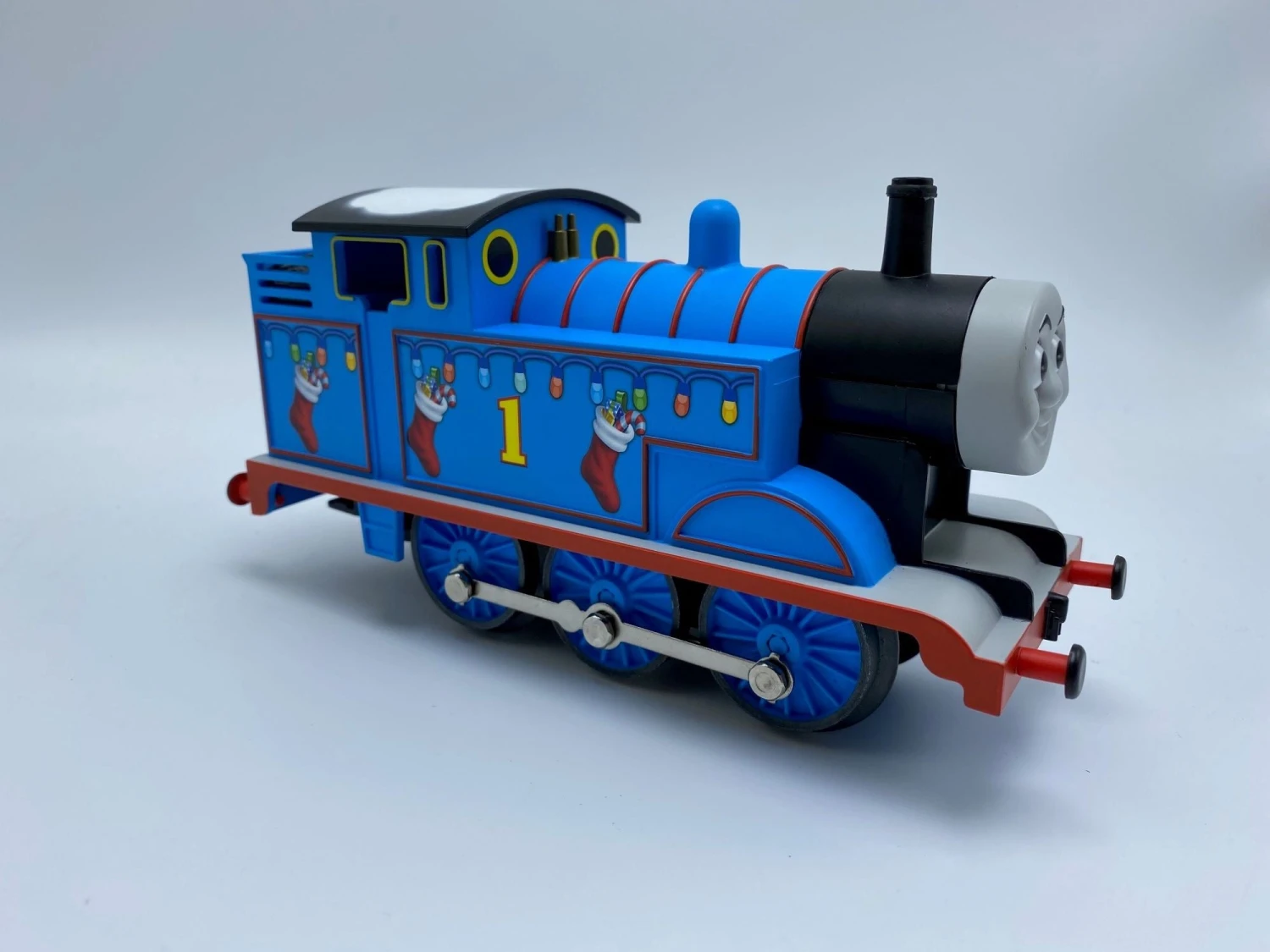 - RailSounds RC sound system with steam chuffing and background sounds, whistle, bell and user-activated Thomas annoucements