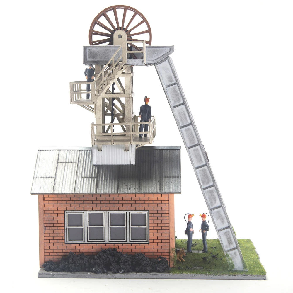 - Authentic mine shaft parts including headframe, shaft station, and sheer’